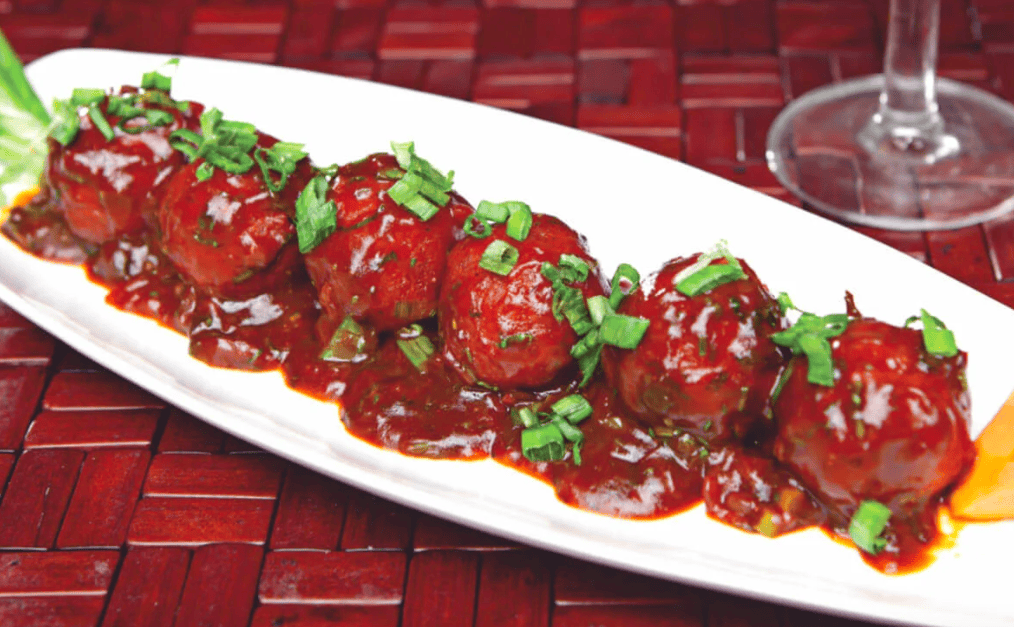 This dry dish has soya manchurian balls containing carrot, capsicum, onion, garlic and our herbs , all tossed up in our savory gravy having so sauce, red chilli sauce, green chilli sauce, pepper & our spices.