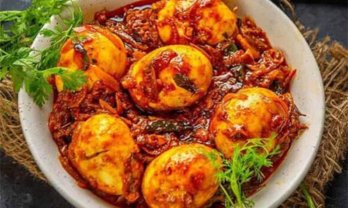 Egg curry is made using coconut milk, tamarind paste, ginger, onion and tomatoes along with eggs and has a very rich flavour in it.